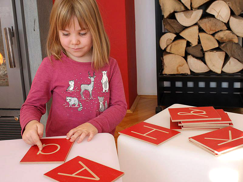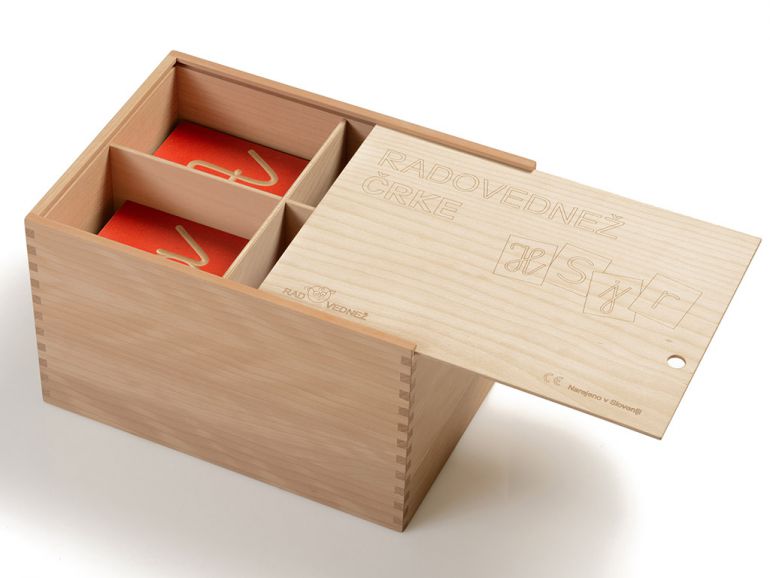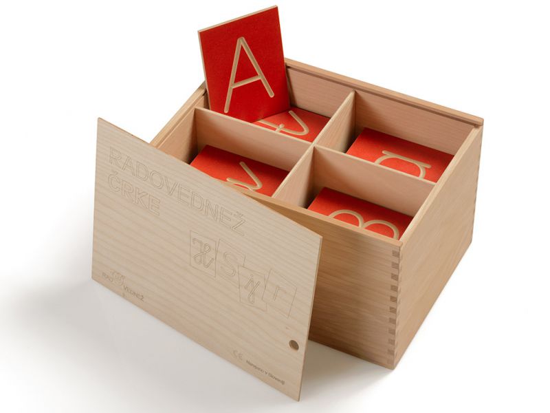 Črke so napisane v pravilnem zapisu, natanko tako, kot se jih otroci učijo pisati v šoli. Lesene plošče so pobarvane z ekološkimi, vodnimi barvami. Učiteljem so namenjene magnetne črke, za frontalno ponazoritev na tabli.