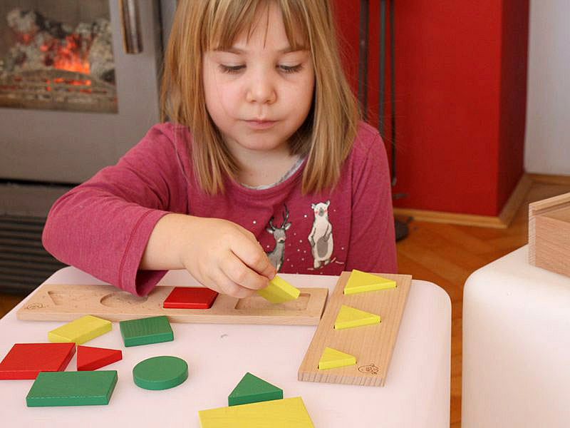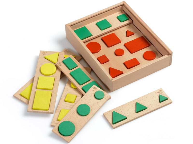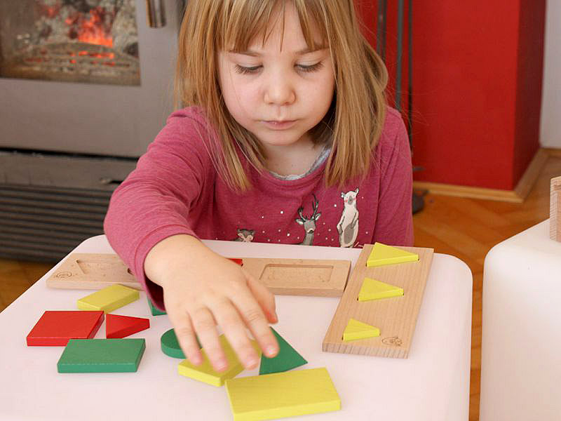 Na začetku otroci zlagajo elemente v deščice z utori ter tako razvijajo motorične spretnosti in prostorske predstave. Hkrati spoznavajo obliko, velikost in barvo likov. Elemente lahko razvrščajo na klopi po navodilih učitelja ali po lastnih zamislih. Like otroci združujejo v množice elementov z enakimi lastnostmi. Težavnost se stopnjuje in prilagajo otrokovim sposobnostim. Otroci izrazijo svojo kreativnost z ustvarjanjem različnih geometrijskih vzorcev v njim smiselno shemo.