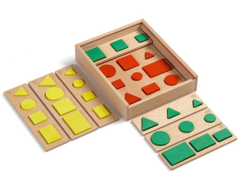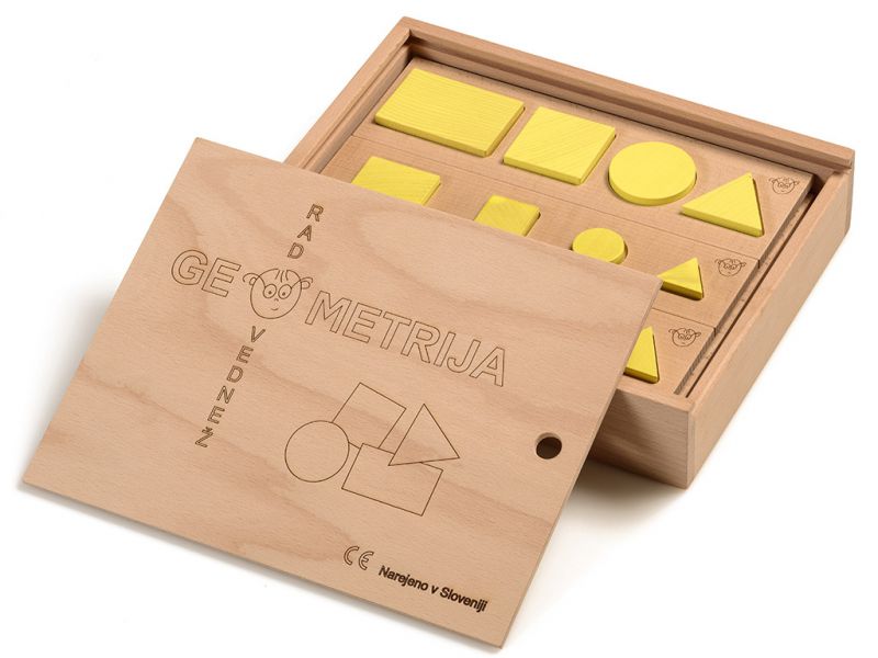 S tem kompletom otroci raziskujejo lastnosti in odnose med štirimi osnovnimi liki: KVADRAT, PRAVOKOTNIK, TRIKOTNIK IN KROG.