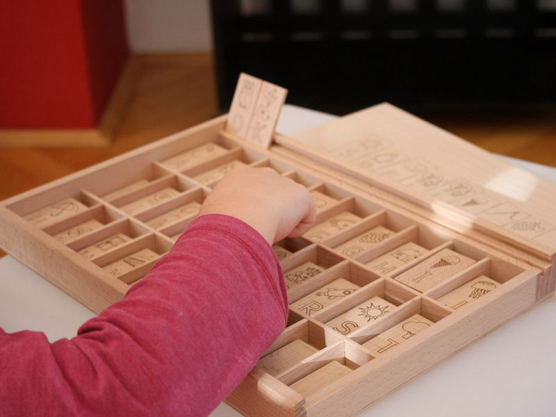 Otroci skozi igro pridobivajo prve izkušnje s črkami, ki jih postopoma zlagajo v besede. Ploščice s črkami in simboli se lahko zlagajo v utor na robu škatle ali na mizo. Otroci imajo tako večjo možnost kombiniranja in zlaganja.